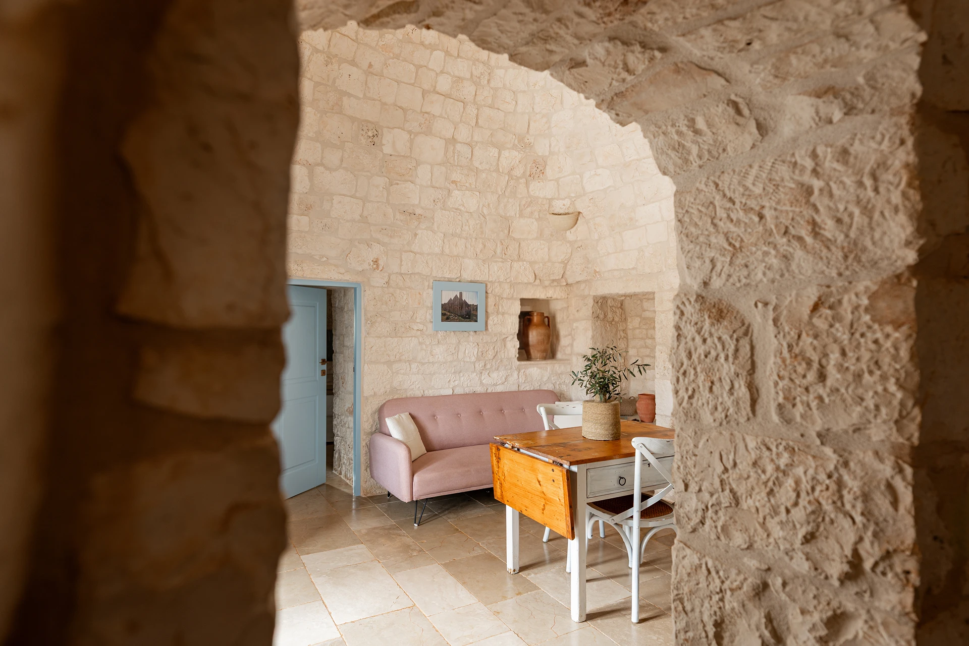 Recently renovated, the trullo has been furnished with care, balancing simplicity and comfort. It is well suited to couples, with space for an additional guest thanks to a single sofa bed in the living area. The atmosphere is relaxed and informal, designed for slowing down rather than filling the day.